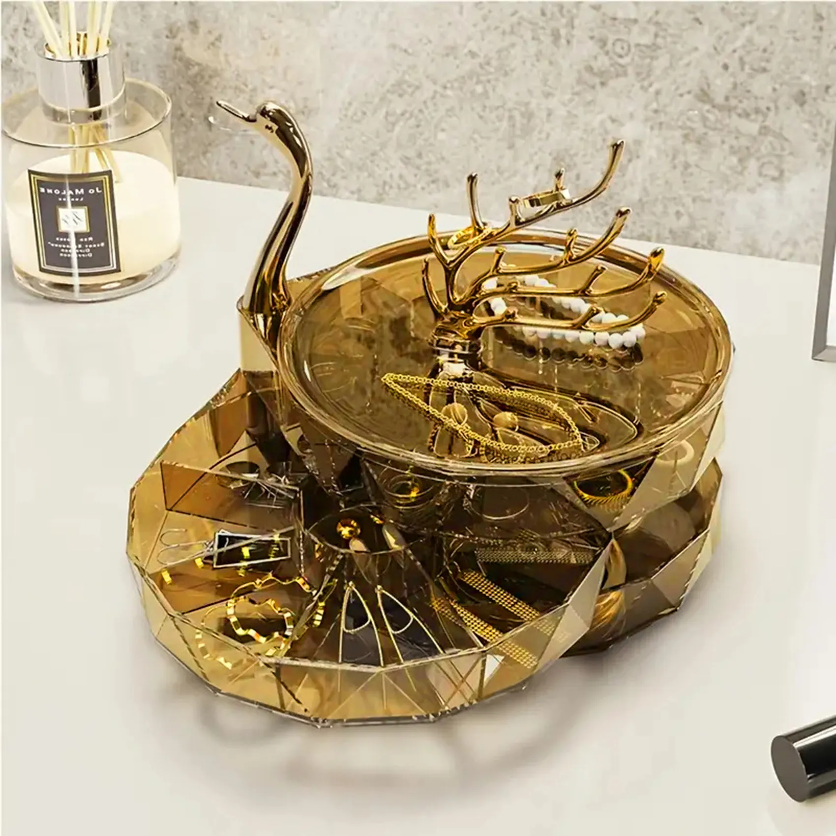 Swan 3-layer Rotating Jewelry Box Transparent