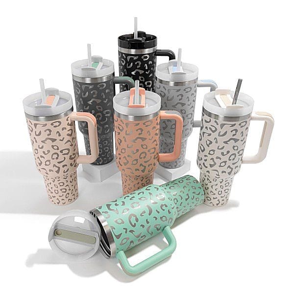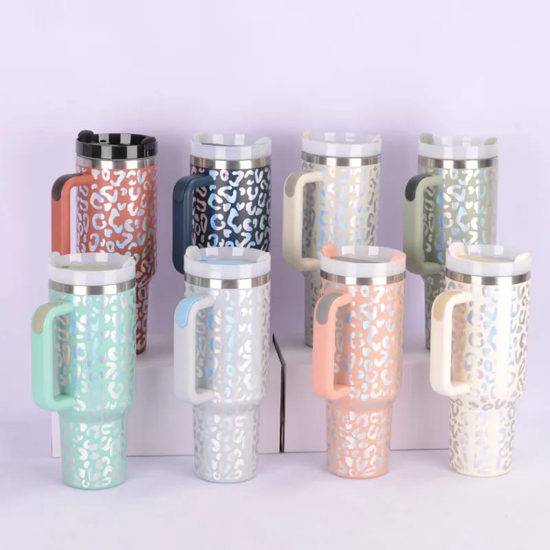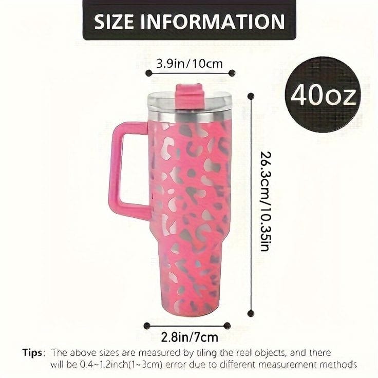 Designed for fashion and function, this 40oz tumbler keeps your drinks hot or cold for hours. Features a durable handle, secure lid, and vibrant leopard print in multiple trendy colors ????. Perfect for travel, office, or daily use!